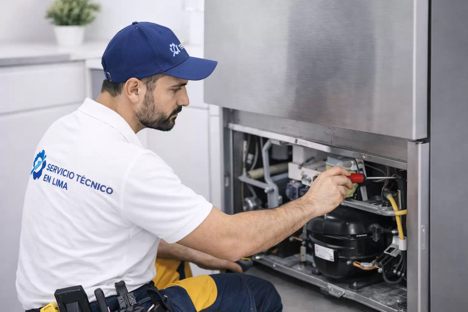 Ofrecemos reparación, mantenimiento y diagnóstico de refrigeradoras a domicilio en Lima. Atendemos refrigeradoras domésticas y comerciales, de una puerta, dos puertas, No Frost, Frost y Side by Side. Nuestros técnicos evalúan el equipo en el lugar y solucionan fallas eléctricas, mecánicas y electrónicas, brindando garantía por el servicio realizado.